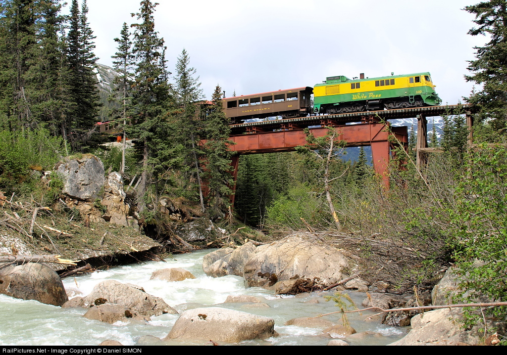 RailPictures.Net Photo: WPY #100 White Pass & Yukon Route GE 90 Class at Between Skagway and White Pass, Alaska by Daniel SIMON