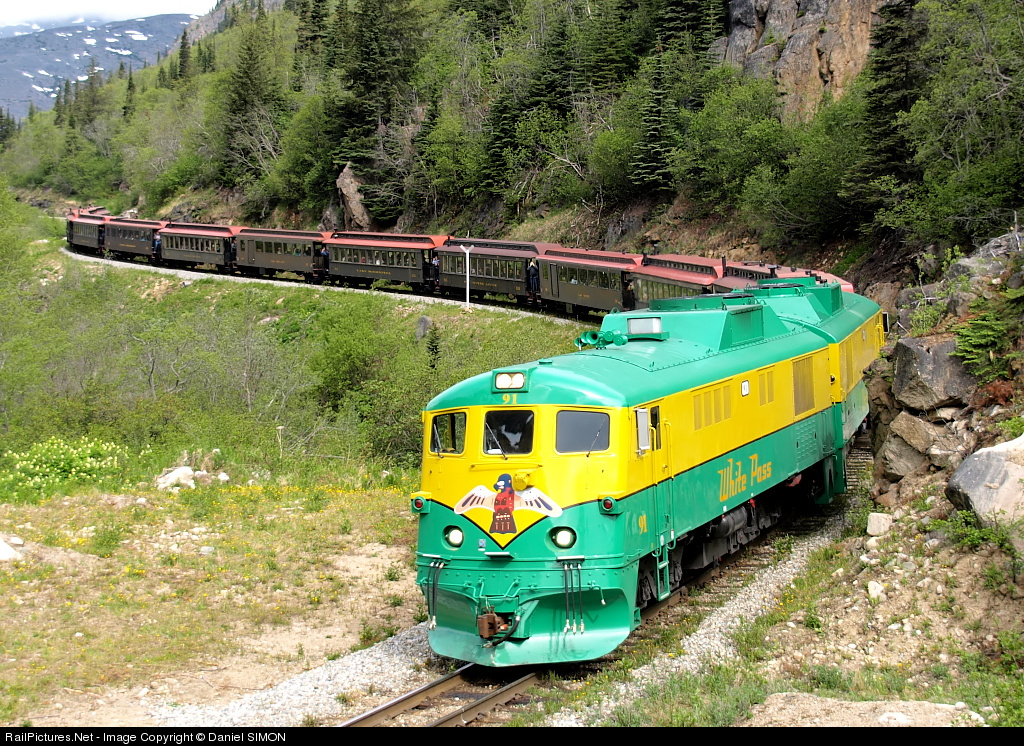 RailPictures.Net Photo: WPY #91 White Pass & Yukon Route GE 90 Class at Between Glacier and White Pass, Alaska by Daniel SIMON