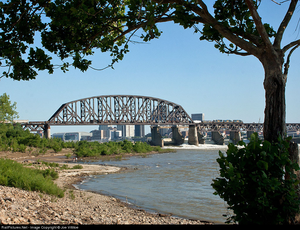 CSX local Y129 returns to Louisville as it heads south across the Falls of the Ohio.