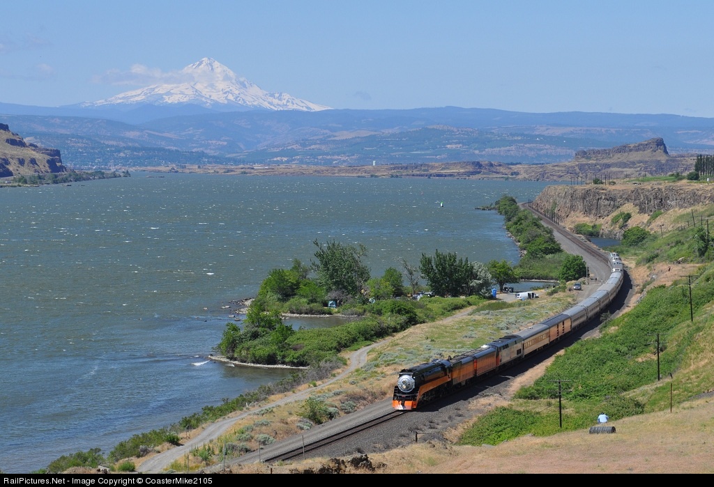 SP 4449 nears Wishram with Mt. Hood in the distance.