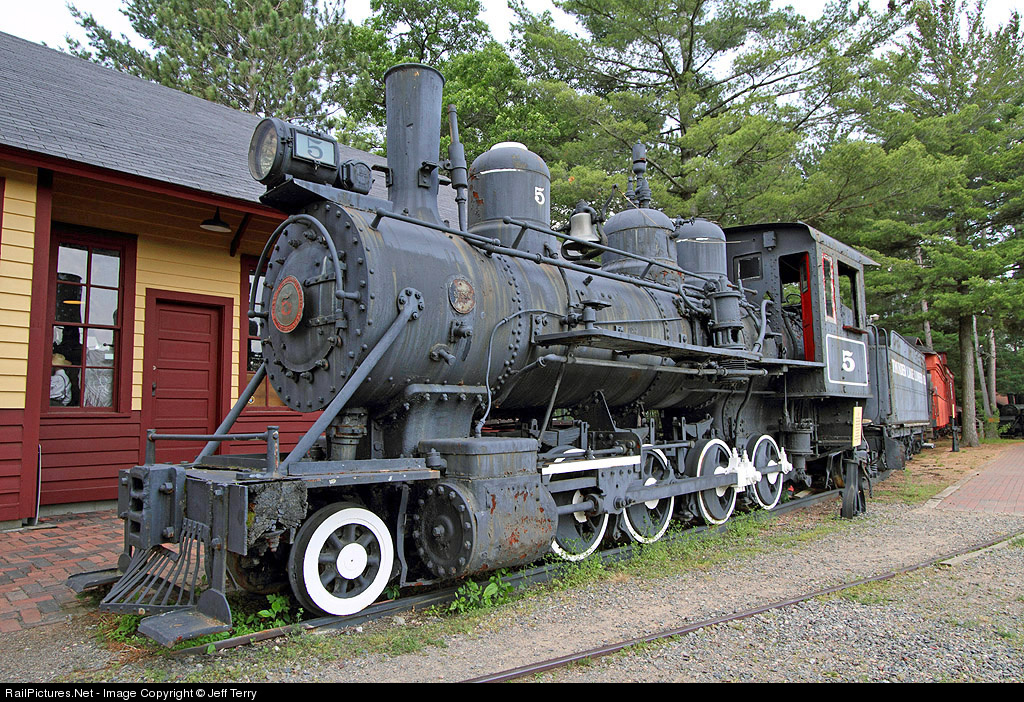 Thunder Lake Logging No. 5, a 1925 Baldwin narrow gauge 2-8-0 (purchased new) on display at the Rhinelander Logging and Railroad Museum. This is the second steam locomotive to be displayed at the logging museum, the first being ex-Denver, South Park & Pacific 2-8-0 191, which had been Thunder Lake No. 7. In 1972 a remarkable deal was worked out between the Rhinelander Logging Museum and the Colorado Railroad Museum. After several years of research, Rhinelander historian Harvey Huston (he wrote the book "Thunder Lake Narrow Gauge") managed to track down Thunder Lake 2-8-0 No. 5, which had been sold to the Ferrocarril Mineral de Chihuahua in Mexico after its Wisconsin logging days were over. When the Chihuahua line ceased operation in 1972 it had four steam engines on its roster; two were to stay in Mexico for display, but owner American Smelter & Refining was willing to donate the other two – including ex-Thunder Lake No. 5 – to the Rhinelander Logging Museum providing that someone else pay the costs to ship them back to the US. Huston contacted Robert Richardson at the Colorado Railroad Museum and worked out a trade: if Richardson would pay to move No. 5 to Rhinelander, he could have ex- DSP&P 191 and the extra locomotive. The prospects of having a genuine DSP&P steam locomotive return to the Centennial State was too good to pass up; some $18,000 later, No. 191 was back on Colorado soil (the additional engine from Mexico is now at the Huckleberry). Number 5 was repainted and placed on exhibit alongside the former Soo Line depot in Rhinelander, where it remains today. It could use a little TLC, but it's still in pretty good shape.
