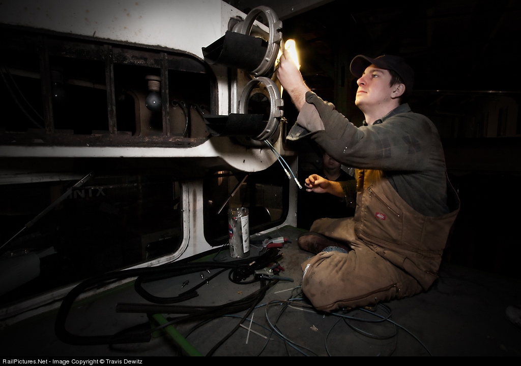 Minnesota Transportation Museum's ex-BNSF 6327 SDP40 is having some wiring repaired for the upper headlamps by Phil Wellman.