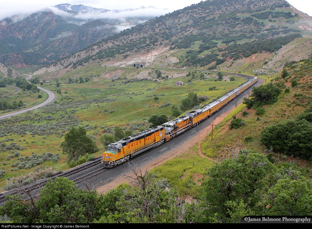 A Union Pacific engineering special running from Salt Lake City to Denver heads east on former D&RGW rails near the ghost town of Thistle, Utah. The 6936, an EMD DDA40X is iconic to the UP, and looks a little out of place traversing the former Rio Grande, a rival and competitor to the UPRR. The Rio Grande Heritage SD70ACE (second out) keeps the memory of the D&RGW alive, somewhat.