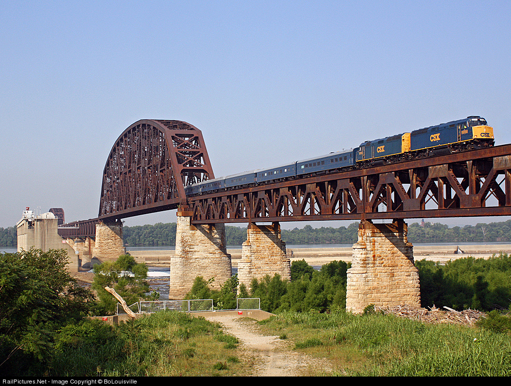 CSX 9998 leads CSX OCS over the Ohio River Bridge making a run on Louisville and Indiana railroad.