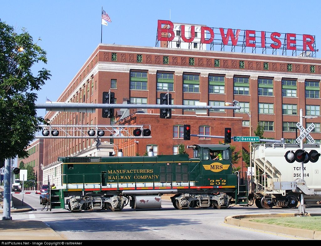| In what are the final weeks of MRS operations, MRS 252 shoves a cut of cars into the In Bev plant in St Louis, Mo |