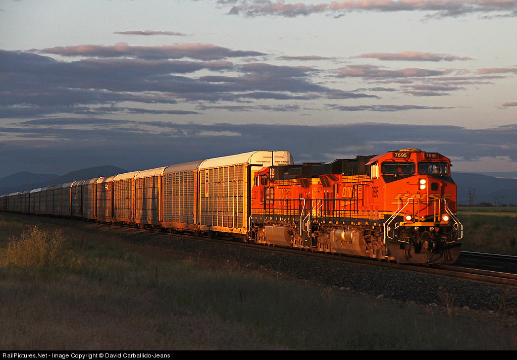 With the Washington state line only a few feet away, BNSF 7695, the gold bar unit, leads a Portland bound auto train with only minutes of sunlight left.
