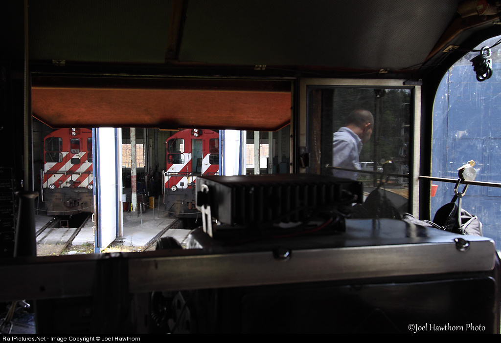 Simpson hogger Stick, seen in the glass, leaves the cab to line the turntable into the 1201's stall. The 1202 and 1200 are at rest on a day when Mill 5 was not operating.