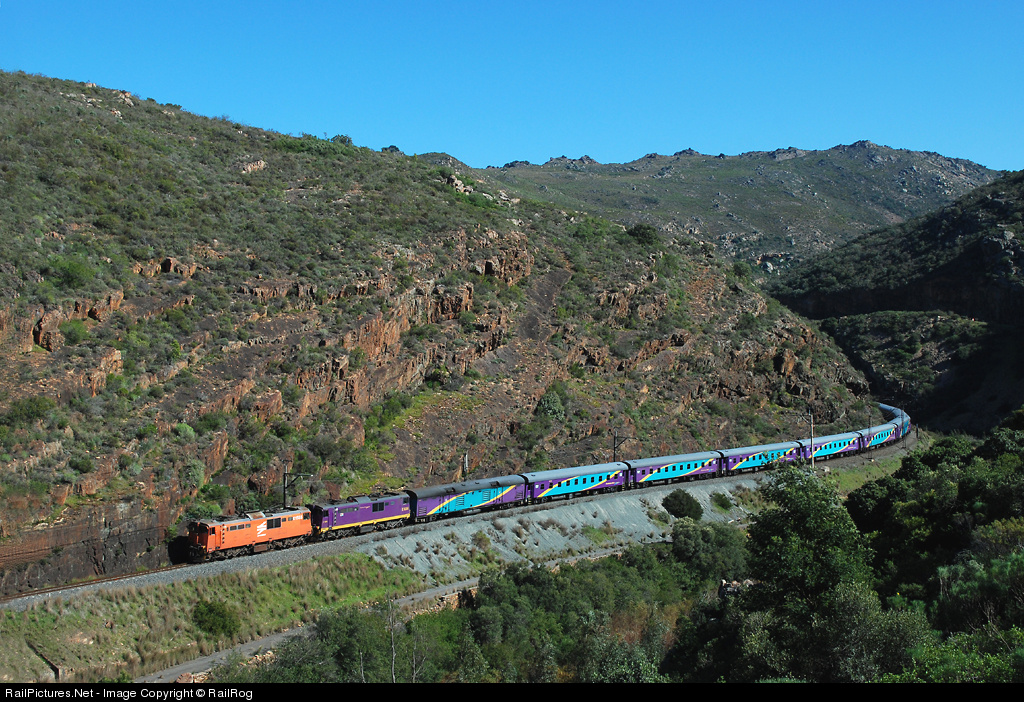 | A favourite spot, a different angle (I normally shoot the southbound view) - the northbound Cape Town - Johannesburg passenger train passes through the rugged defile of Tulbagh Kloof |