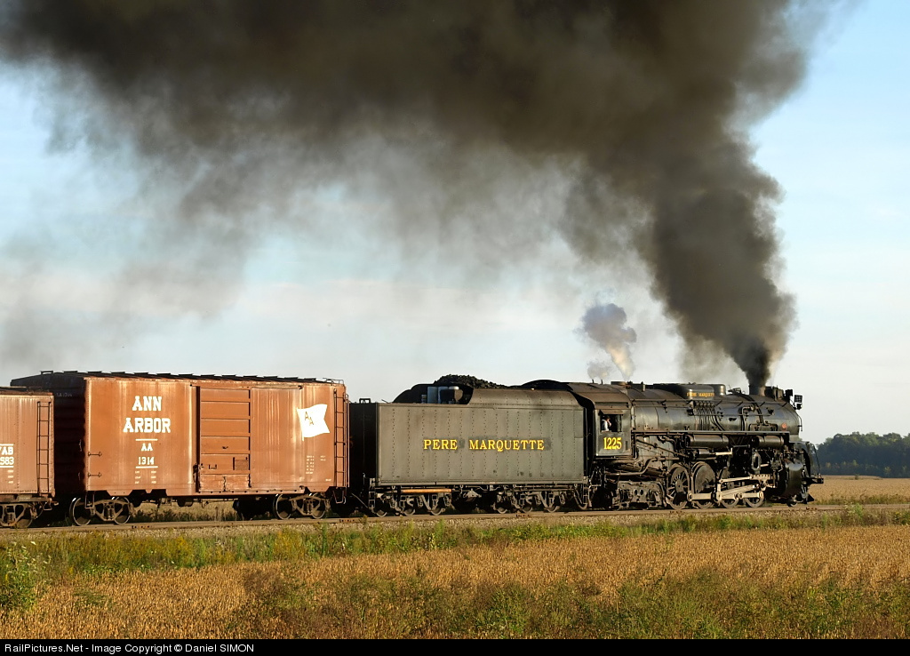 RailPictures.Net Photo: PM 1225 Pere Marquette Steam 2-8-4 at Owosso, Michigan by Daniel SIMON