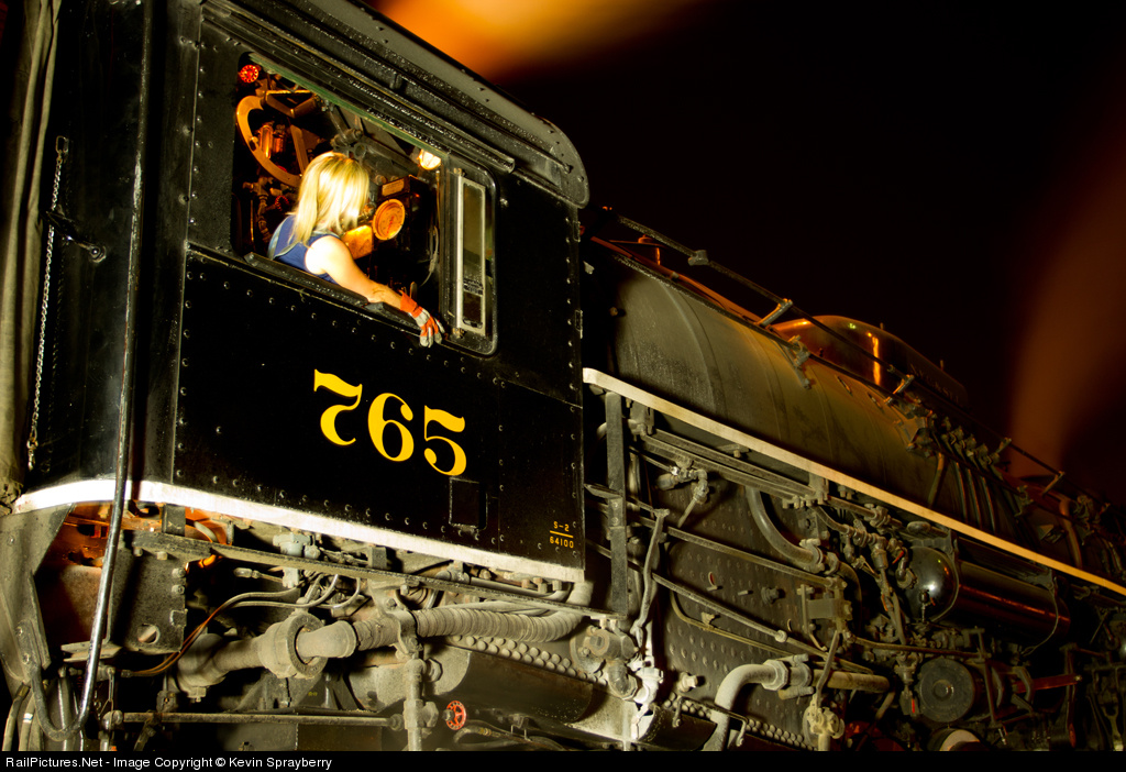 | Not to often you see a blonde engineer, especially on the 765. Well it happened on this clear night in Rock Island. |