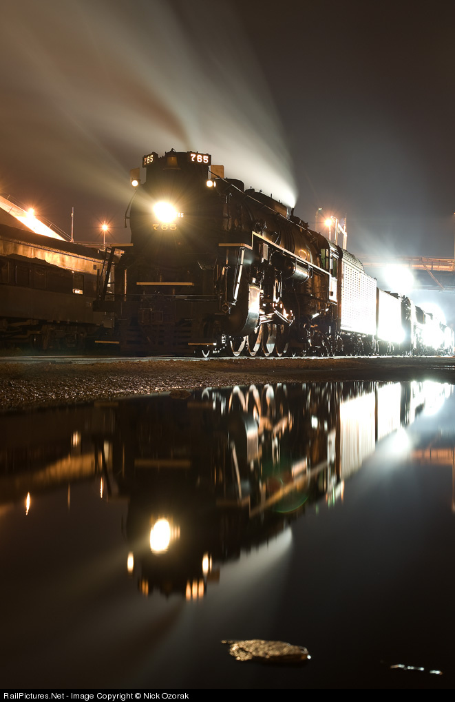 Having had a successful run the previous day, 765 rests in the yard. To be honest, I was stunned when I captured this image. Other than a little bit of straightening and sharpening in Photoshop, this picture came as-is from the camera. No extra blur, no added contrast, no nothing. After I took the image, I had the chance to talk with three of the Fort Wayne Railroad Historical Society crew members. They were on-duty from 9 PM to 2 AM to keep the fire going and watch over the locomotive until another crew came. This July night was already warm, and the heat from the fire made it even warmer in the cab. However, their job was an important piece of making the daytime operation possible. It is easy for us railfans to forget all of the work involved behind-the-scenes to keep a machine like this in operation. There are jobs that often go unnoticed, but having men and women who perform them makes it possible for us to enjoy events like Train Festival, photo charters, and excursions. I give a big thanks to the crews who made this photo possible. Photo taken during the Saturday night photo shoot at Train Festival 2011.