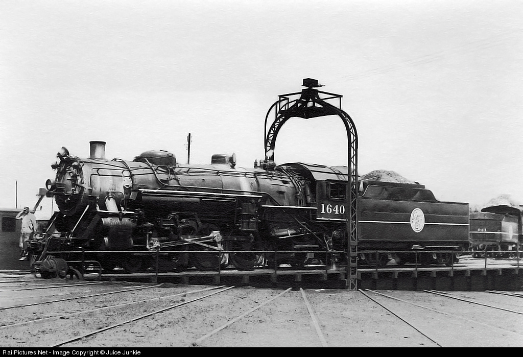 Atlantic Coast Line 4-6-2 1640 was one of 165 P-5b Class locomotives built between 1922 and 1926 by the Baldwin Locomotive Works. They were designed as a dual purpose "Pacific" to take over freight and passenger service. They had 69" drivers, 25 x 28 inch cylinders, boiler pressure of 200 lbs, and produced 43,116 lbs of tractive effort. This image from my collection shows ACL 1640 taking a spin on the turntable at the Tampa roundhouse. They were all retired between 1950 and 1953.
