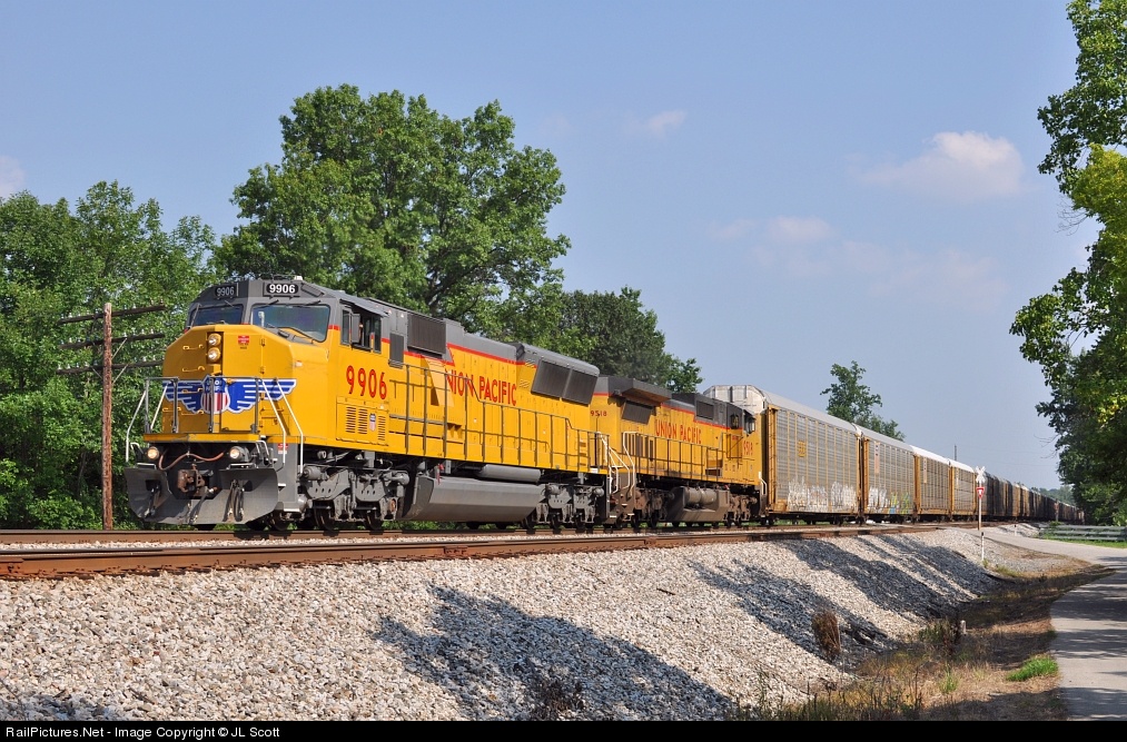 CSX Q284 approaches the south end of Osborn Yard as it rolls past the Bountiful Way road crossing near Coral Ridge. We hit the jackpot with UP 9906 (SD59MX / SD59M-2) in charge of this CSX Mainline Subdivision northbound. What a fantastic looking unit!