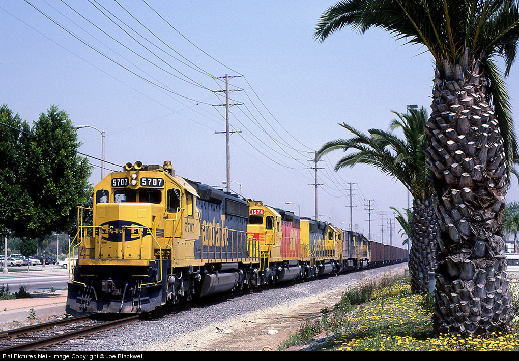 a westbound Santa Fe "extra Harbor" train of export copper concentrate is using the Harbor Belt Line RR to access Kaiser's Bulk facility at the end of the line in San Pedro. Today this is the Pacific Harbor Line, the adjacent APL facility is now Yang Ming facility and the Kaiser Bulk facility in San Pedro is just a memory.