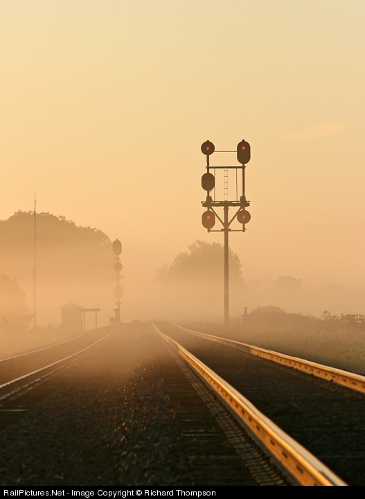 As the morning fog begins to burn off, the signals at Miller City begin to become visible.