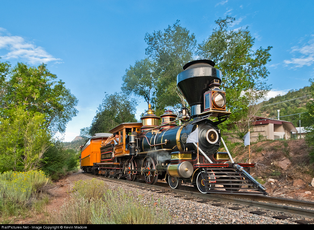 Early riser. Engineer Dan Markoff, clad in his signature black derby and leather vest, leans out the cab window of his beautiful "Eureka" as he takes a passenger extra west to Cascade just after sunrise. This photo was taken during the Durango & Silverton Narrow Gauge Railroad's annual Railfest event in 2010. Built in 1875, the Eureka has been a frequent visitor to Railfest in recent years and is the only wood-burning 4-4-0 that still hauls wilderness excursions with paying passengers. As unique as she looks, Eureka actually does have a couple of surviving Baldwin-built sisters, although unfortunately, neither is able to "get around" on their own these days. One example is North Pacific Coast Railroad #12 "Sonoma", which is now prominently displayed at the California State Railroad Museum in Sacramento. If you happen to visit the CSRM, you'll find that little Sonoma is the spittin' image of Eureka.