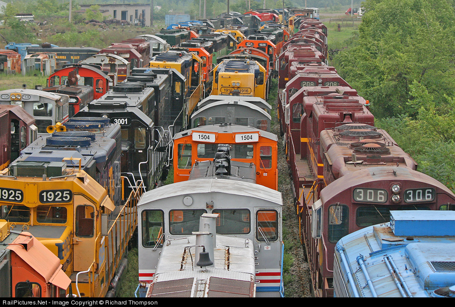 An assortment of engines of all kinds are presented in this view of LTEX's locomotive shops.