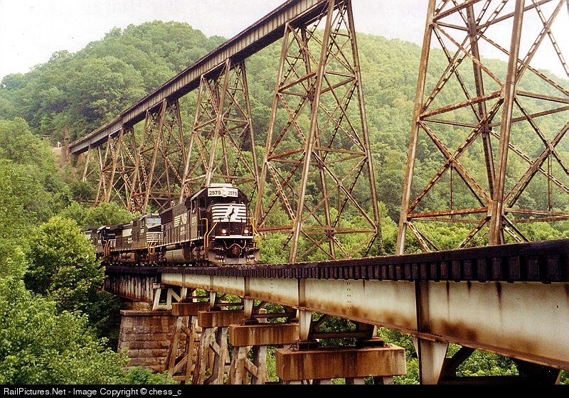 As seen on RP.net previously on the KY Derby Train, 2575 leads a coal train south over Copper Creek on NS' Appalchia Line.