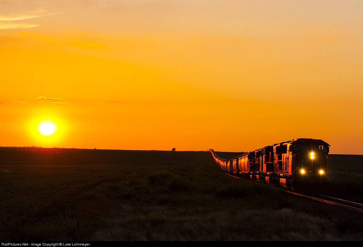 | CN 5641 leads a UP grain train from Colby, KS through a nice sag just west of Wakeeney, KS. |