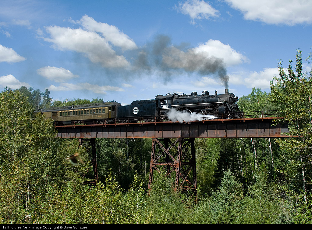 | Soo Line 2719, dolled up as DM&IR 403 for the Missabe Railroad Historical Society Convention, rolls toward Two Harbors on former DM&IR trackage. |