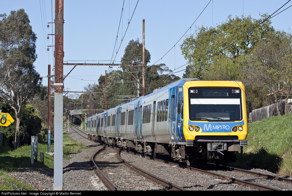 An X'trapolis set bound for Eltham clatters back onto the double track, after descending the 1 in 50 grade from Heidelberg. The short Rosanna - Heidelberg section is one of several single track bottle-necks on the Hurstbridge line, and contains a short tunnel which has been used as an excuse not to duplicate for almost half a century.