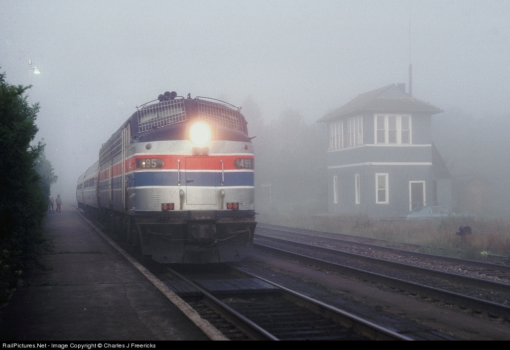 Like many fellow railfans, when on vacation with family, I get up early and head on down to tracks. In the case of this image, I was still vacationing with my parents, as I caught Amtrak 152 in the thick morning fog. The Old Saybrook wooden interlocking tower, which looked nicely restored, was later torn down.