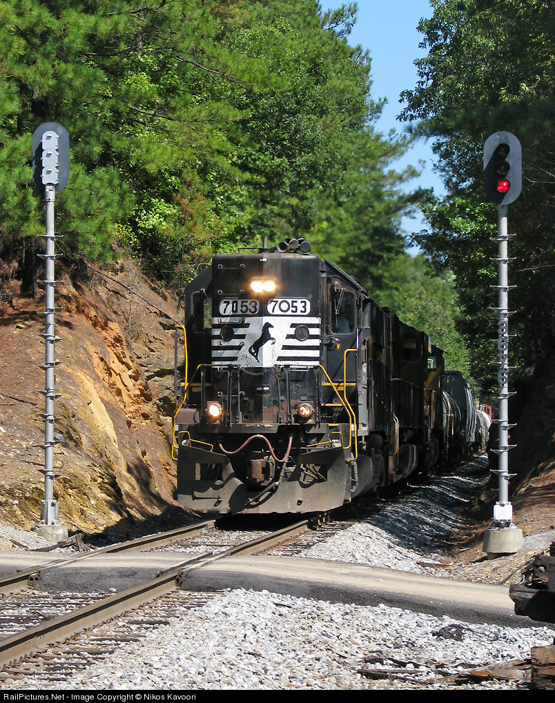 | Southern all the way Southern power, Southern signals, what more could you ask for. NS 187 with a very rare GP50 leader splits the ABS Signals at the MP 387.6 just south of Sylacauga. |