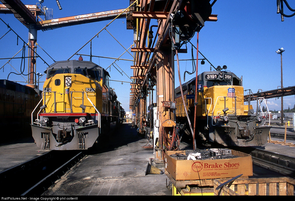 Union Pacific locos 3191 and 8232 are seen at Roseville in 1998.
