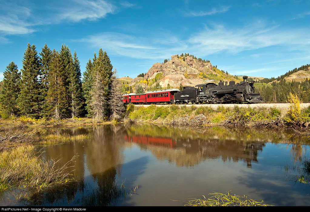 Steamscape: Perry's Pond. The daily train from Antonito to Chama has just departed Cumbres Pass and begun the hour-long, downhill drift toward its destination. After crossing Highway 17 in Coxo, Colorado, the train passes one of the prettiest spots on the entire line: Perry's Pond. Apparently named in honor of photographer, Otto Perry, this pond not only can yield a pretty reflection of the passing train, but of the landmark Windy Point in the background. Although a light breeze produced a slight ripple on the pond this day, the reflection of 488 and the mountain she just conquered was indeed quite remarkable.