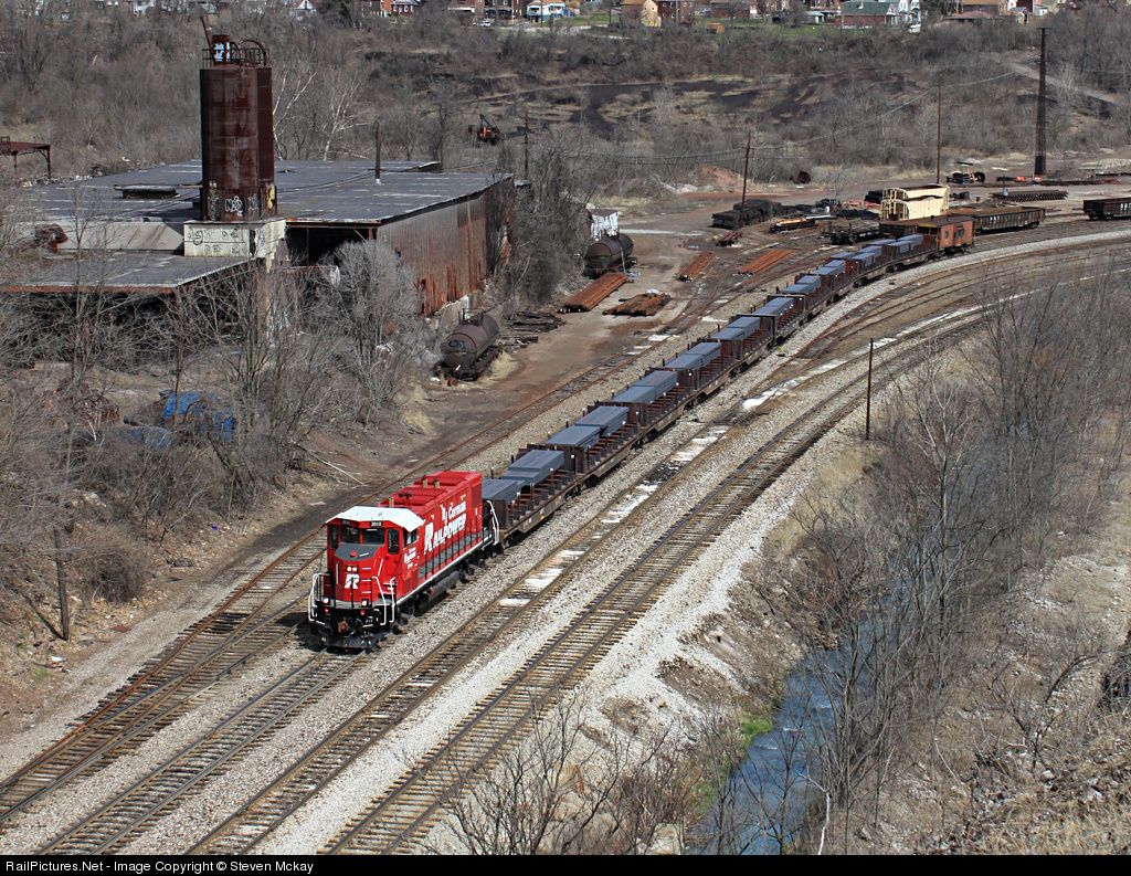 After trading places a few days before with BMEX 259, RPRX 2010 finally hits the main line performing some tests that will possibly lead to the Union Railroad buy some gensets. Here 2010 leads a train of 10 slabs past the class yard bound for Irvin, the 259 struggled up the grades in the Mon Valley with only 7 slabs, the 2010 on the other hand handled the train with no problem.