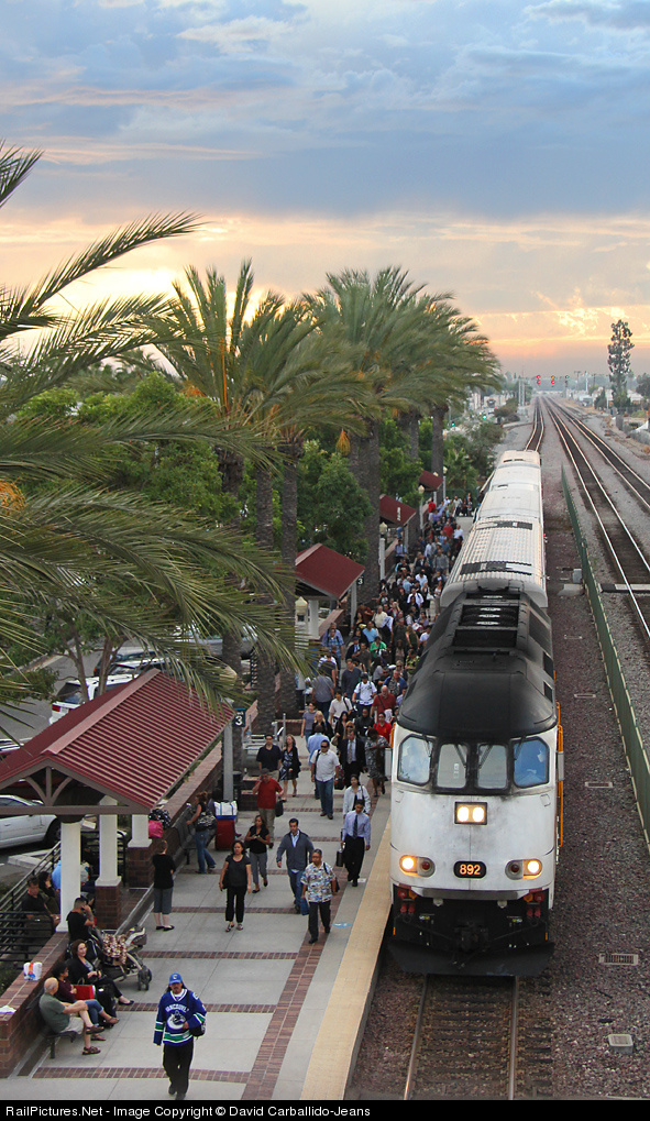 | TGIF!!! Many commuters disembark their Metrolink Orange County line train bound for Oceanside at Fullerton. The school of people head home after a long work week at the office as the setting sun makes a pleasant way for these passengers to end their week. |