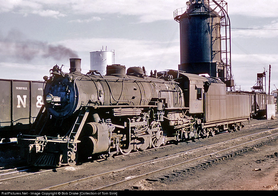 WS-SB Mikado #834 resting at Winston Salem, NC in this March 1957 view. [Photo by Bob Drake, collection of Tom Sink]