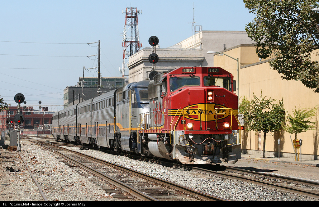 BNSF 147 leads an hour late Amtrak # 711 down the 'square.
