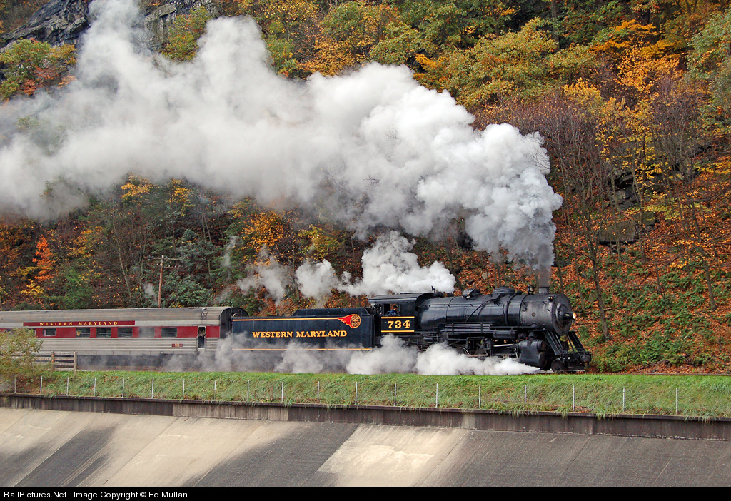RailPictures.Net Photo: WMSR 734 Western Maryland Scenic Railroad Steam 2-8-0 at Cumberland, Maryland by Ed Mullan