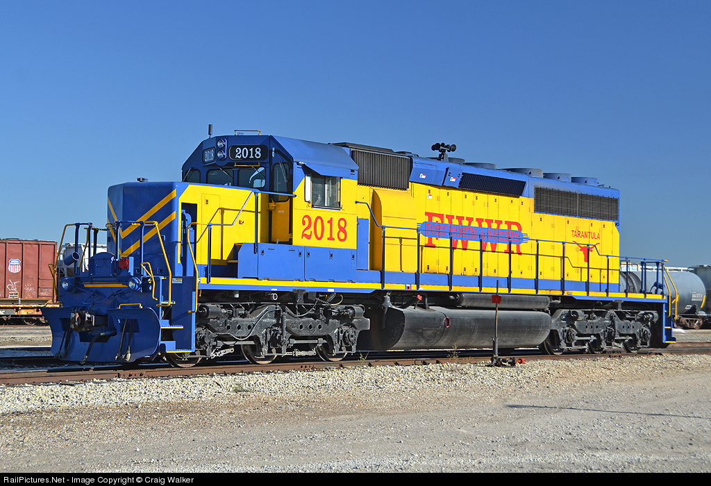| Fort Worth & Western SD40-2 2018, "Tarantula," is ex-Union Pacific 3252, nee-UP 8012. Photographed on railroad property with permission. |