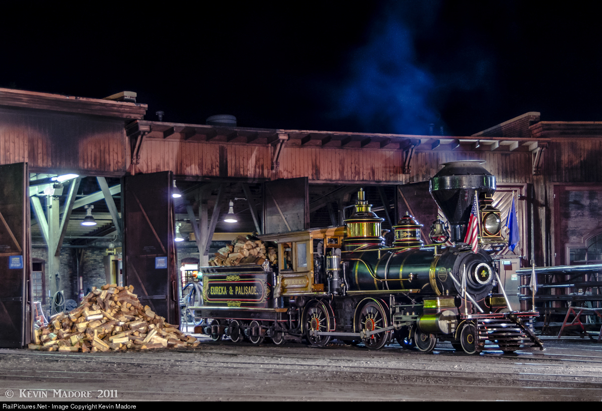 Proud Nevada Native. She may have been "born" in Pennsylvania, and she might be visiting Colorado, but whenever she travels, her owner leaves no doubt as to where home is. Whenever Eureka & Palisade #4 performs in front of a crowd, Dan Markoff affixes the flags of the United States of America and the State of Nevada to her flagstands. On this particular day, she had been part of the Durango & Silverton's "Parade of Trains" during the annual Railfest event. When the party was over, Dan was kind enough to pose her just outside her stall at the Durango Roundhouse, so that folks participating in Pete Lerro's night shoot could get a few snaps if they so desired. So, while everyone else was blasting away at the roundhouse crew feverishly working on some Alco product, I snuck away and got my portrait of the real "Belle of the Ball".