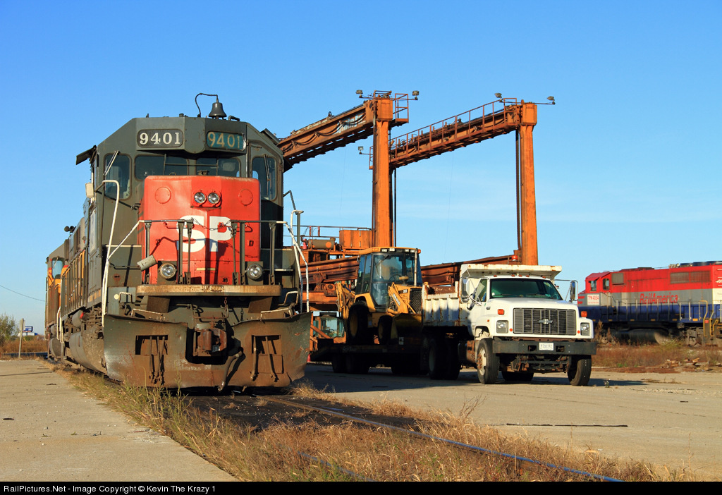 The TP&W (Rail America) recently acquired Ex-SP tunnel motors 9395 & 9401 from CEFX. Here at the old Hoosier Lift, the 9401 is seen basking in the morning sun waiting for its next assignment.