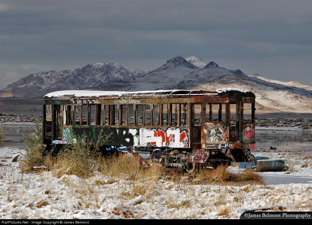 Abandoned and forlorn along the southern shore of the Great Salt Lake, a former Salt Lake Garfield & Western interurban car rusts away along the briny waters of the lake, some 15 miles west of downtown Salt Lake City. This former McGuire-Cummings electric interurban car was placed on display in the 1970s as a monument to a popular mode of travel to the Saltair resort that once stood along the shore. Today it serves as a hangout for campers, curious sightseers and (believe it or not) a popular backdrop for wedding photography.