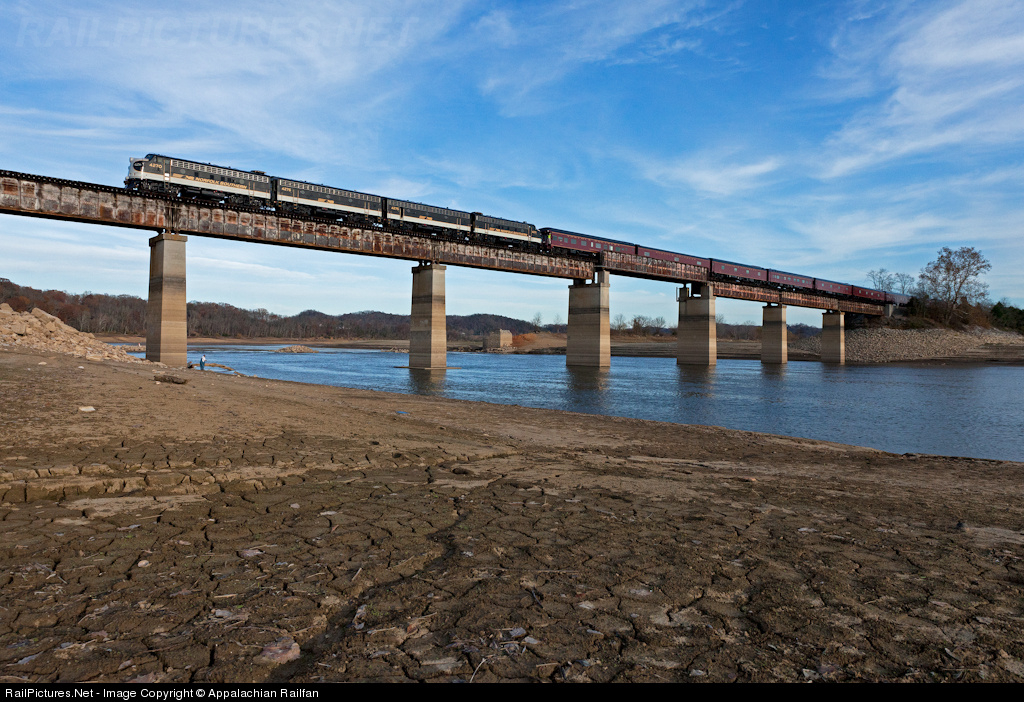 | The NS F's lead the Asheville-Knoxville return trip for the Lexington Group as they cross the French Broad River at Leadvale,TN. |