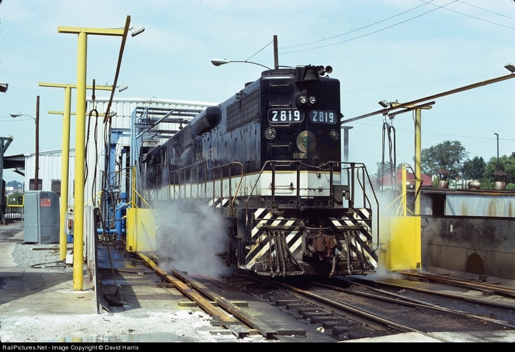 Hi-hood GP38s in basic black had to be among the blahest locomotives ever, but at least tight-ship Southern generally kept them pretty clean.