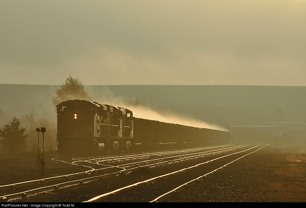 | The crew aboard BNSF 9215 looks for lights back to Keenan Yard after loading 60 cars of taconite pellets in the early morning hours of a foggy, cold morning at United Taconite. This train will make it's way to Mexico for unloading. |