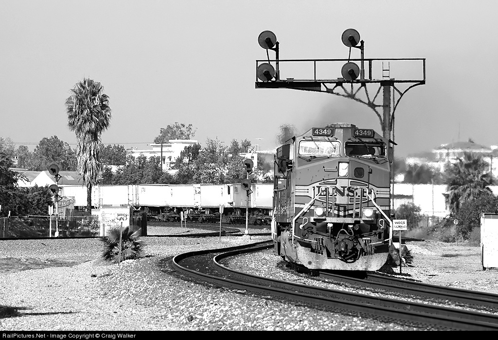BNSF Dash 9-44CW 4349 hustles hot intermodal train Z-LACNYC9-20A out of Los Angeles to eastward to New York City. Fullerton Junction, just east of Fullerton’s Amtrak/Metrolink station, is the point at which Metrolink’s Orange Sub (the track on the left, leading toward San Diego) diverges from BNSF’s San Bernardino Sub (heading to, ultimately, Chicago).