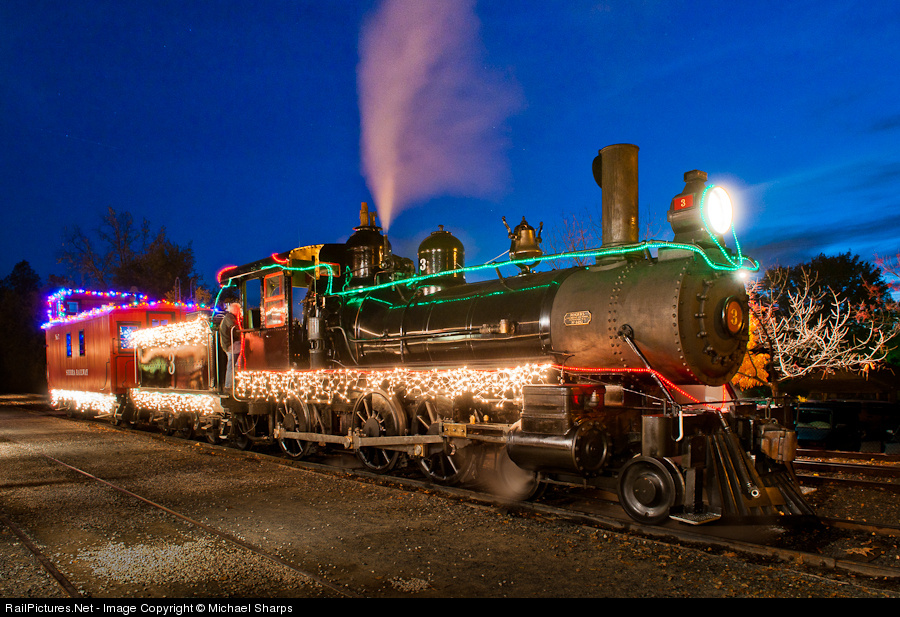 Locomotive #3 is decked out in Christmas Lights for the Santa Starlight Express.