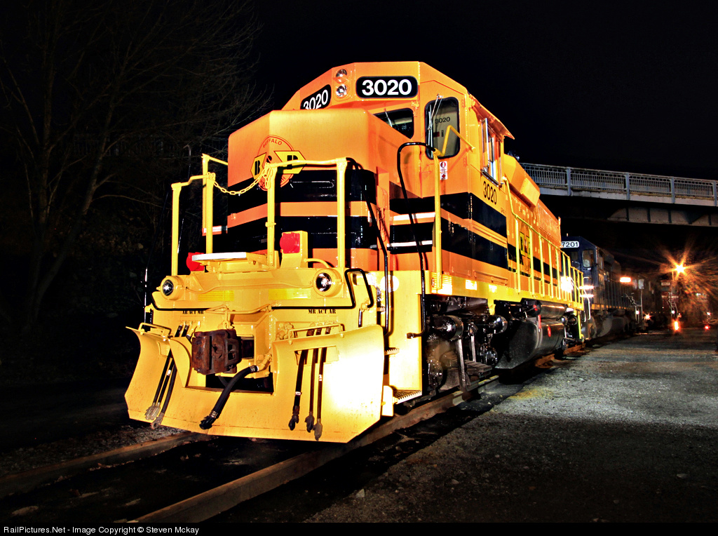 Freshly out shopped 3020 sits at the tail end of a 5 units consist that includes a HLCX SD40-2, BPRR 922, 3807 and 807 as they sit out another cold night in Butler. The 3020 was a a straight GP40, BPRR 6673, that was recently rebuilt and repainted it wore Family Lines paint up to the rebuild.
