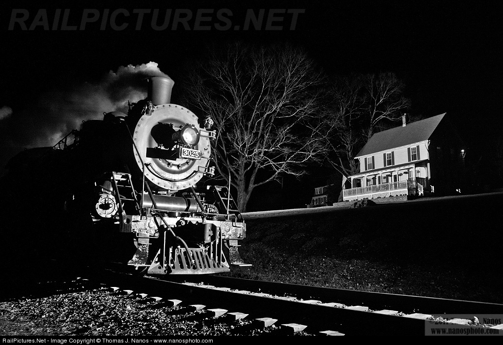 | North Pole Express Northbound. Valley Railroad No. 3025 leads the second section of the sold out North Pole Express northbound just past the Hadlyme station in Chester, CT. Two Lumedyne flashes triggered off of a Canon EOS 50D with a Sigma 18-50mm f/2.8 EX DC |