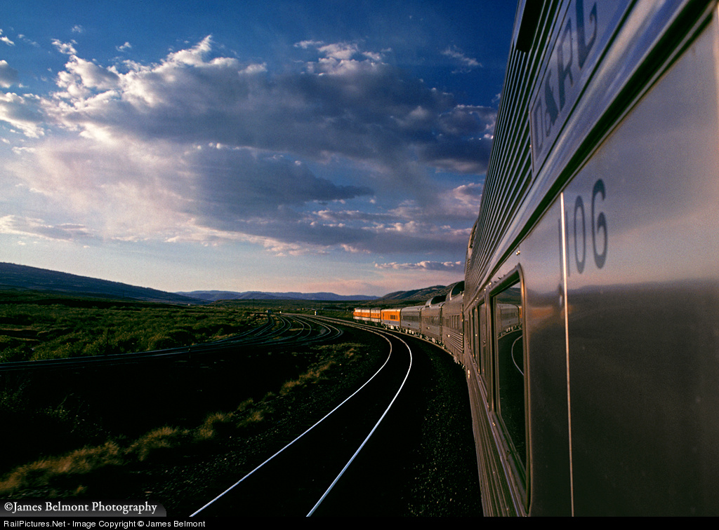 | At the end of a September day in 1976, the Rio Grande Zephyr roars westward through Colton, a junction point with the Pleasant Valley Branch five miles east of 7440 ft. Soldier Summit. What better place to be than riding in the vestibule of a classic streamliner on a beautiful summer evening? |