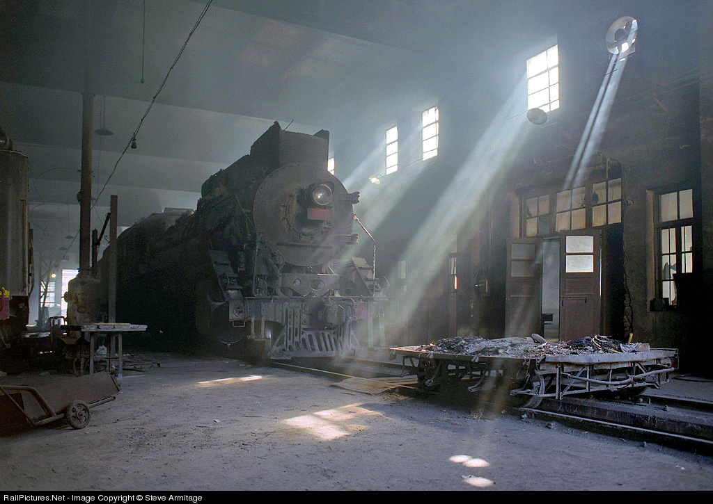 Nothing quite evoked the word 'atmosphere' as much as when the great wooden barn doors were opened for us at Huludao MPD to reveal this glorious sight. The soft sighing of locomotives in light steam, the and the diamond sparkling of dust particles in the shafts of sunlight streaming in from the high windows quite literally transported me to another time. Yes, there were also cables to trip over, grease to slip on, pits to fall into and heavy, unforgiving coupling rods on which to stub your toes - simply amazing! If you think my words are waxing lyrical, then I admit only to understatement and hope that my camera portrays but a little of that wonderful, wonderful place.
