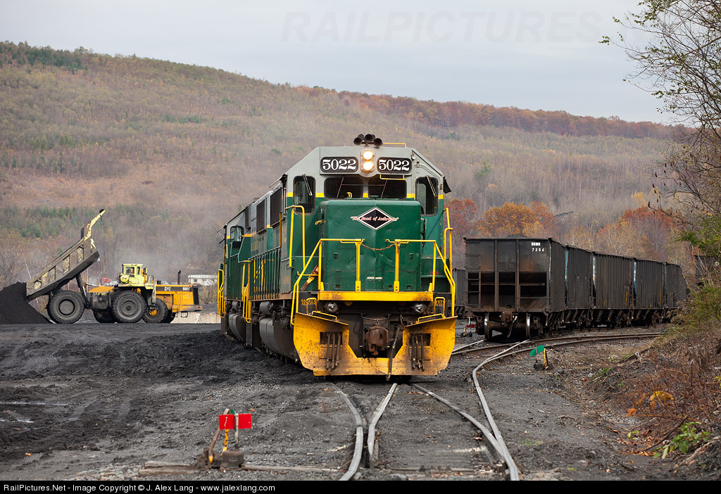 | Three SD50's assist in loading a coal train at "Reading Anthracite", where progress was delayed due to a shortage of coal at the railhead; witness a large dump truck and a big CAT bringing more coal up from the mine area. |