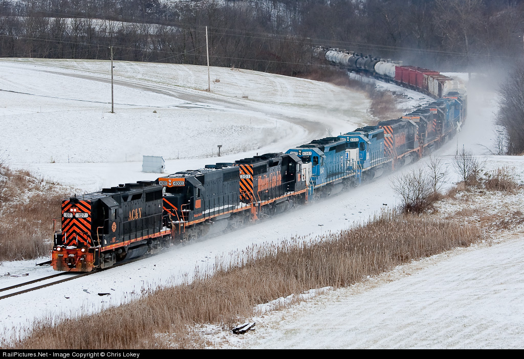 This was a lashup of lashups for the Wheeling. 10 locomotives and 88 cars made up the WE213. This train originates at Rook Yard in Greentree, PA and then usually stops at Mingo Jct Yard on its way to the WLE home offices in Brewster, OH. The 213 left Rook with only 3 locomotives and picked up another 7 during its short stopover in Mingo Jct making this monster lashup.
