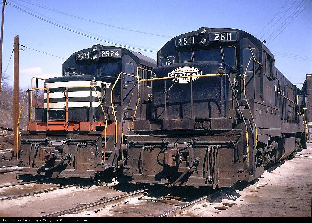 A shotgun wedding. It's three months into the Penn Central's takeover of the New Haven Railroad, and GE U25Bs of the New York Central and New Haven idle in the former New Haven Maybrook Yard. By this time, Maybrook Yard, once a destination for NH, NYC, NYO&W, Erie, L&NE, and L&HR is a study in decline and decay.
